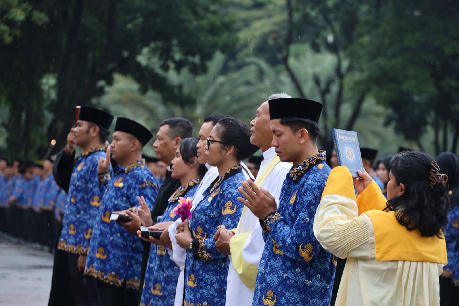 RAKYAT NEWS, BEKASI — Ribuan Pegawai Pemerintah dengan Perjanjian Kerja (PPPK) Paruh Waktu di Kota Bekasi menyampaikan rasa syukur usai resmi diangkat oleh Pemerintah Kota Bekasi di Alun-alun M. Hasibuan, Selasa (31/12/2025).