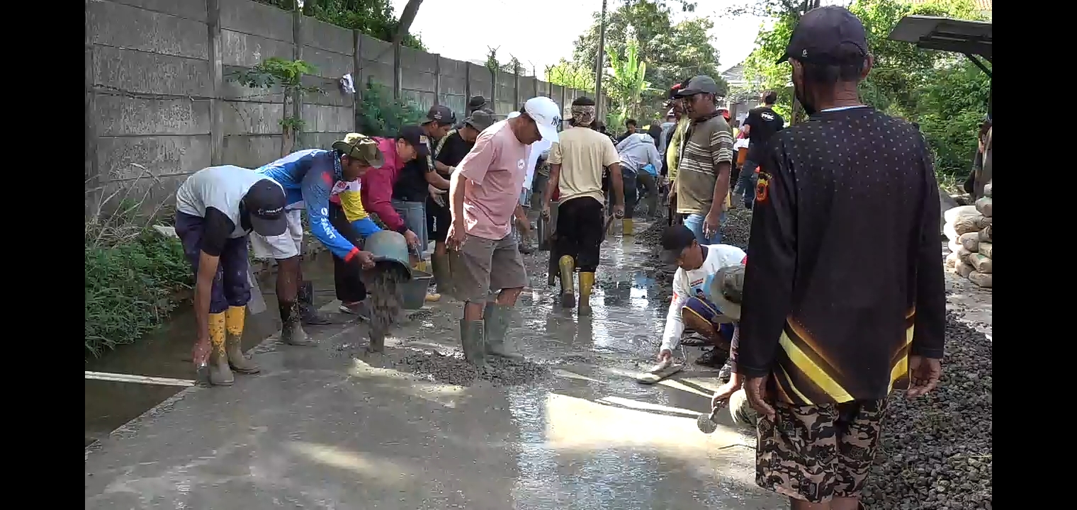 Pengecoran jalan yang secara administrasi merupakan wilayah Desa Jelegong, Kabupaten Bandung, Jawa Barat yang telah puluhan tahun luput dari perhatian pemerintah setempat menggerakkan sejumlah pihak mulai dari Tokoh Masyarakat, Tokoh Agama, Pemuda dan Sejumlah Pengusaha Lokal Desa Cinta Mulya untuk bergotong royong memperbaiki jalan bahkan tidak hanya mengeluarkan materi melainkan juga tenaga hingga pengecoran jalan akhirnya rampung dikerjakan.